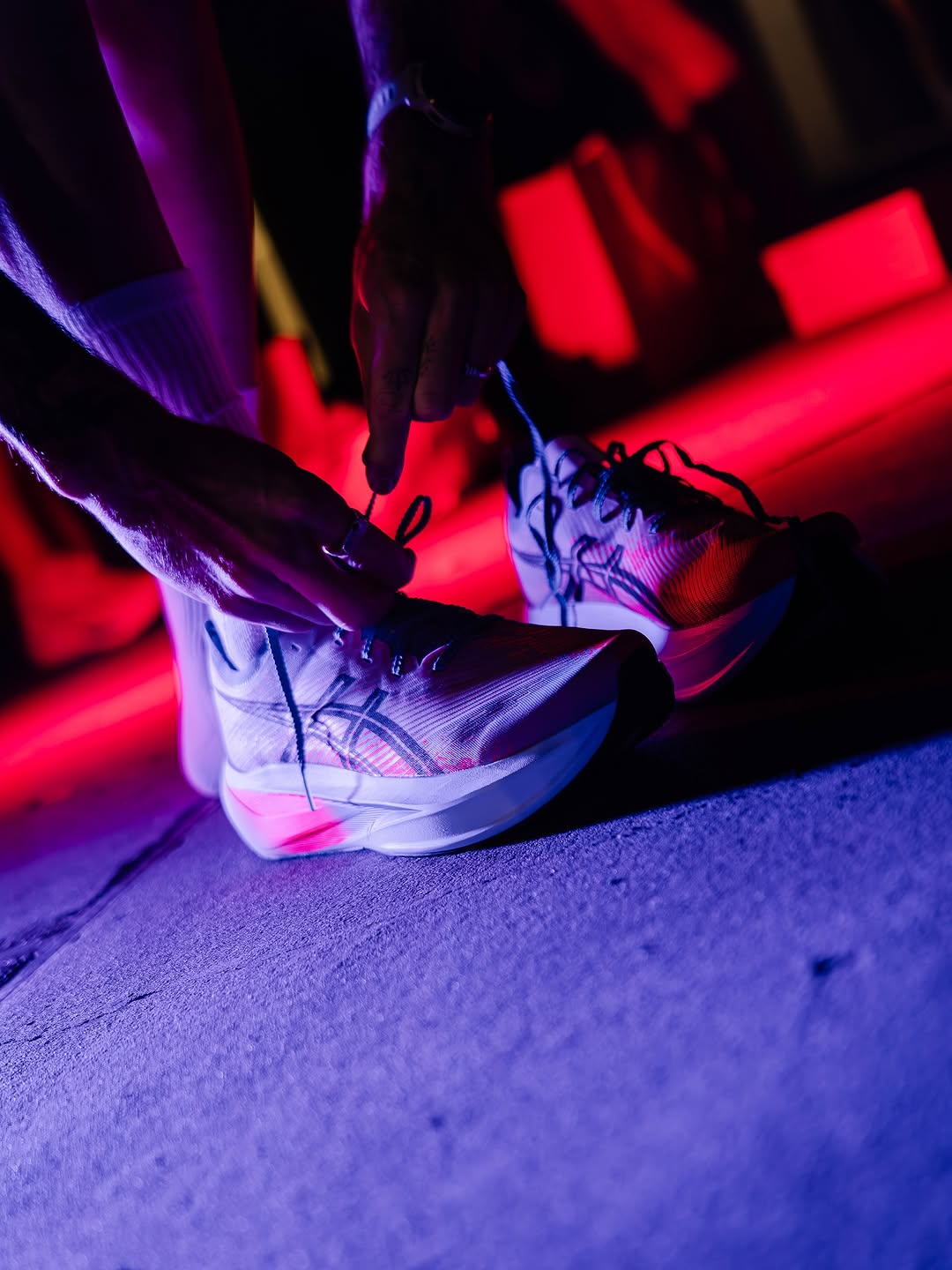 The activation transformed the stadium into a festival-style environment, combining custom lighting, branded media walls, glow boxes, coffee cups and food trucks to create an immersive and visually striking atmosphere. Interactive elements, including relay races, encouraged attendees to participate actively, generating organic social content and enhancing brand exposure. Thoughtful touches, such as branded blankets, ensured a premium guest experience while reinforcing the ASICS brand.
