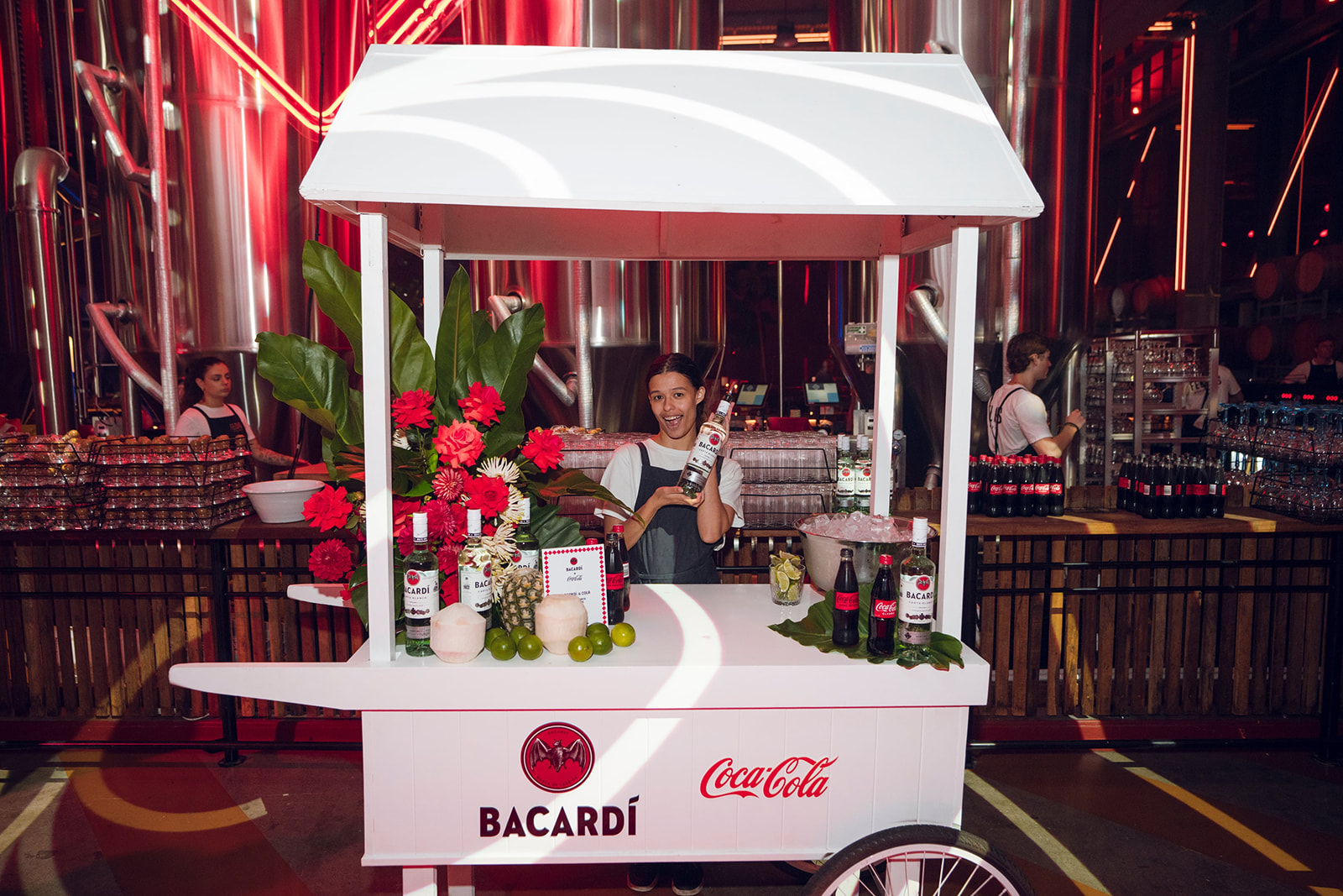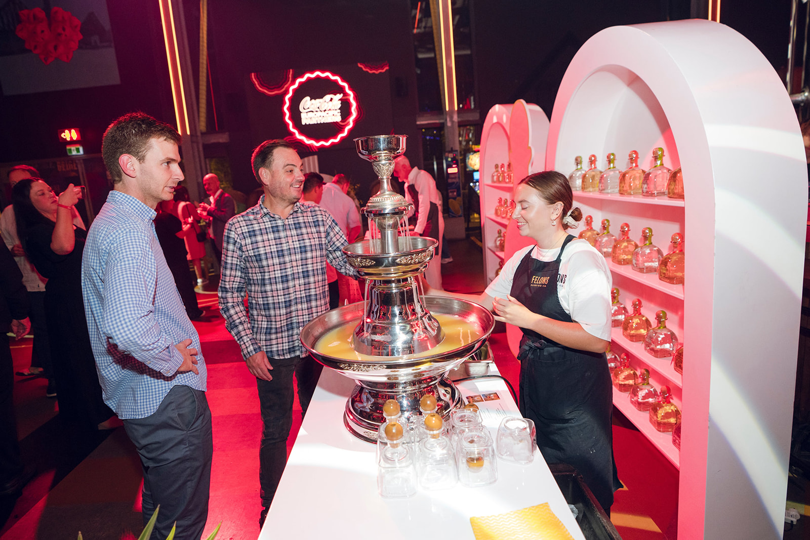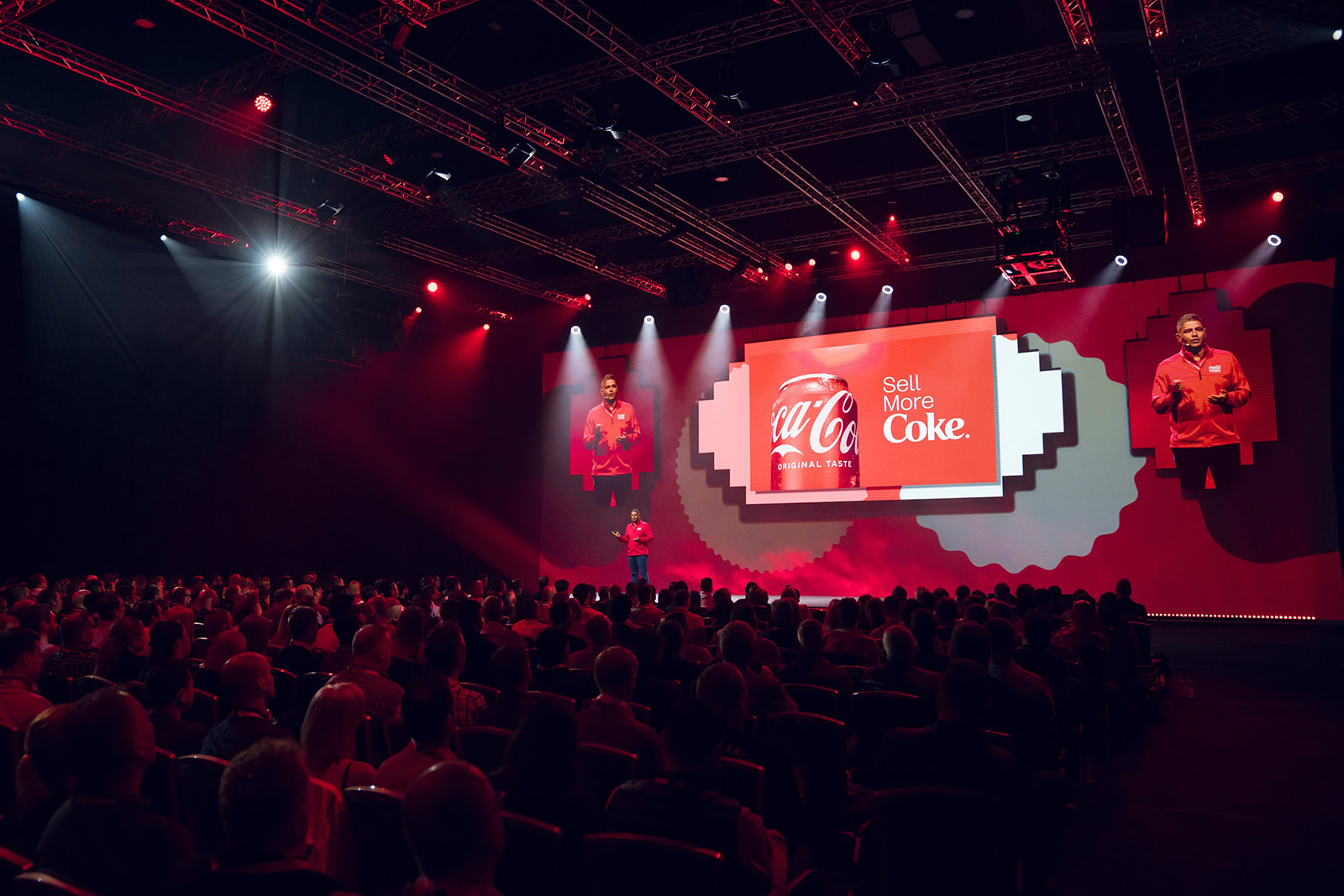 The event combined spectacular production and precise event management, with pyro effects, t-shirt cannons, a balloon drop, and a drone show creating memorable moments throughout. Three large LED screens, complemented by a 40-metre bespoke video projection, were designed in line with CCEP brand guidelines, ensuring content was displayed with maximum visual impact in a fully branded venue.