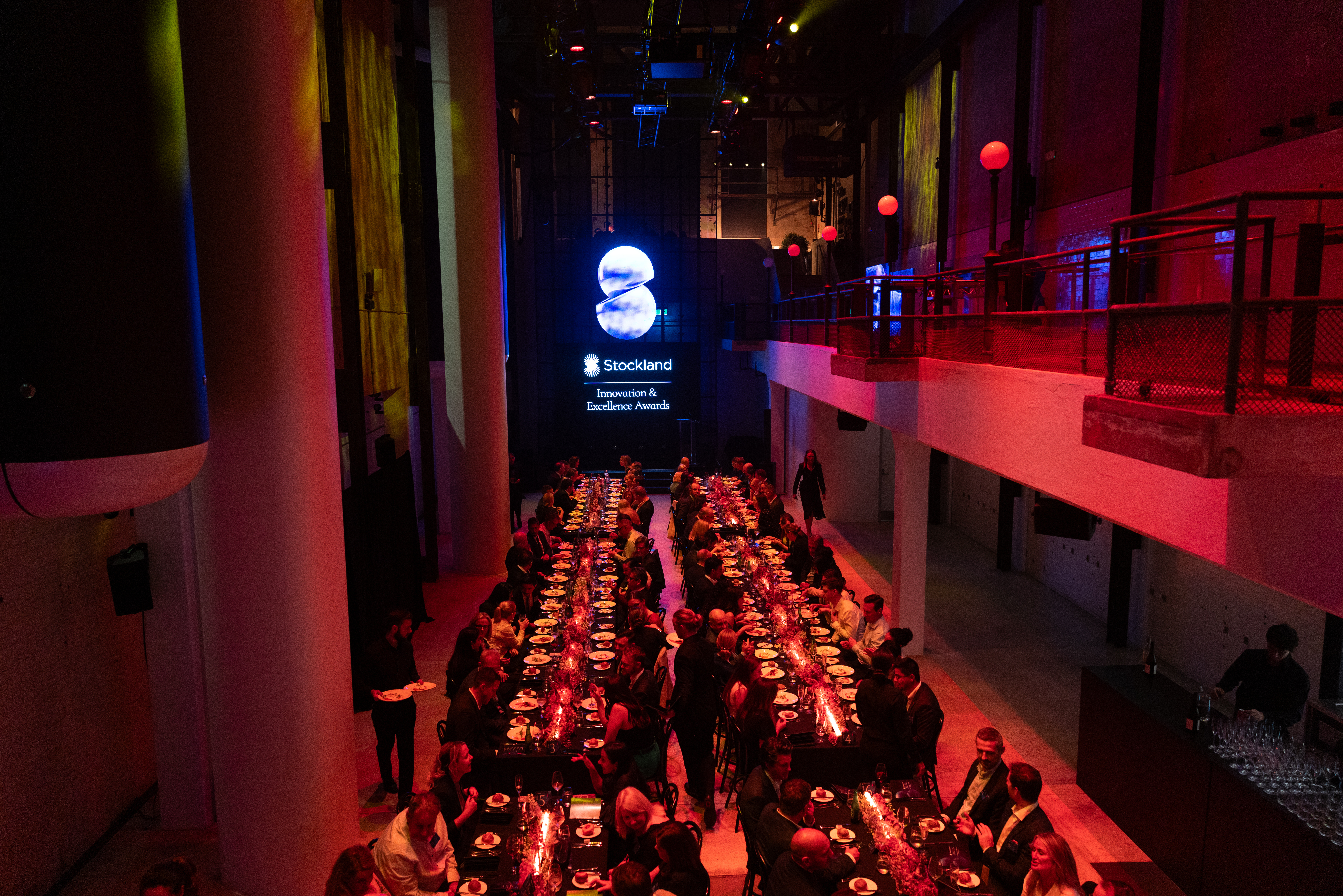 Peanut Productions delivered the Stockland Innovation Awards, the company’s premier gala recognising the achievements of individuals and teams across the year. Held at Machine Hall for 150 guests, the blank canvas venue required full bump-in of infrastructure, including kitchen, furniture, and technical production, providing a perfect opportunity to showcase Peanut Productions’ expertise in creating fully immersive, high-end experiences.